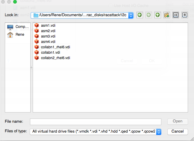- Selecciona el disco asm1.vdi y dale clic a Open.